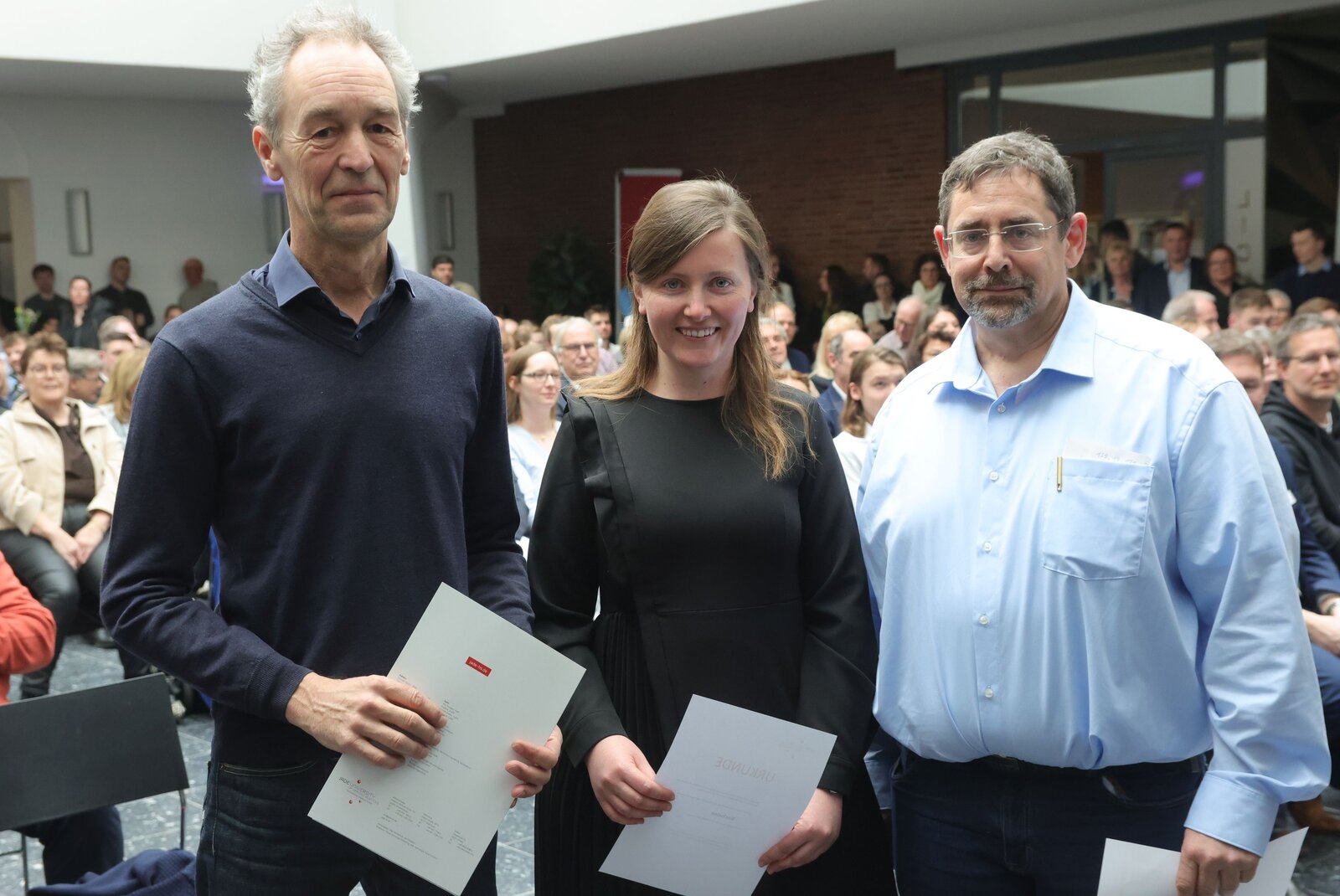 Jana Reuter und Anton Mohwinkel erhielten vom Oldenburgischen Architekten- und Ingenieurverein für ihre außergewöhnlichen Leistungen je einen Geldpreis von 200 Euro und eine Ein-Jahres-Mitgliedschaft im Oldenburgischen Architekten- und Ingenieurverein, überreicht von Christoph Bagge. Felix Dierking erhielt für seine herausragende Bachelorarbeit einen Geldpreis vom Förderverein der Jade Hochschule in Oldenburg e.V. Überreicht wurde der Preis von Prof. Dr. Sebastian Hollermann.