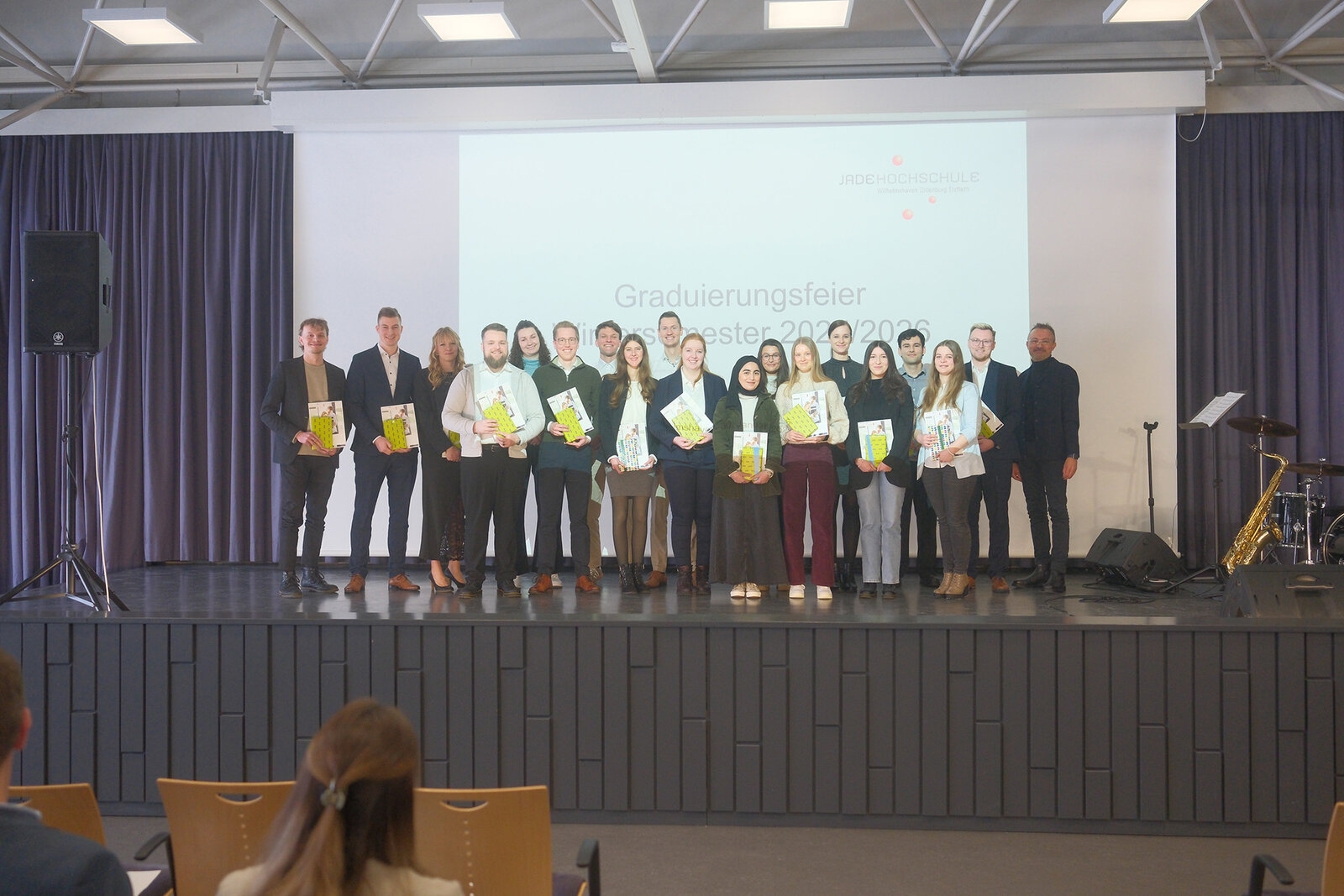 18 Absolvent_innen wurden am Studienort Wilhelmshaven für den besten Notendurchschnitt in ihren jeweiligen Studiengängen ausgezeichnet (Foto: Jade HS/Sascha Stüber)