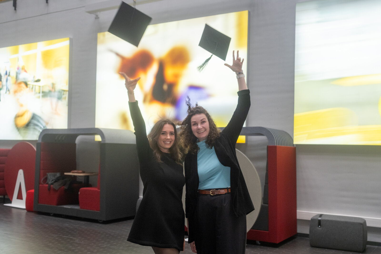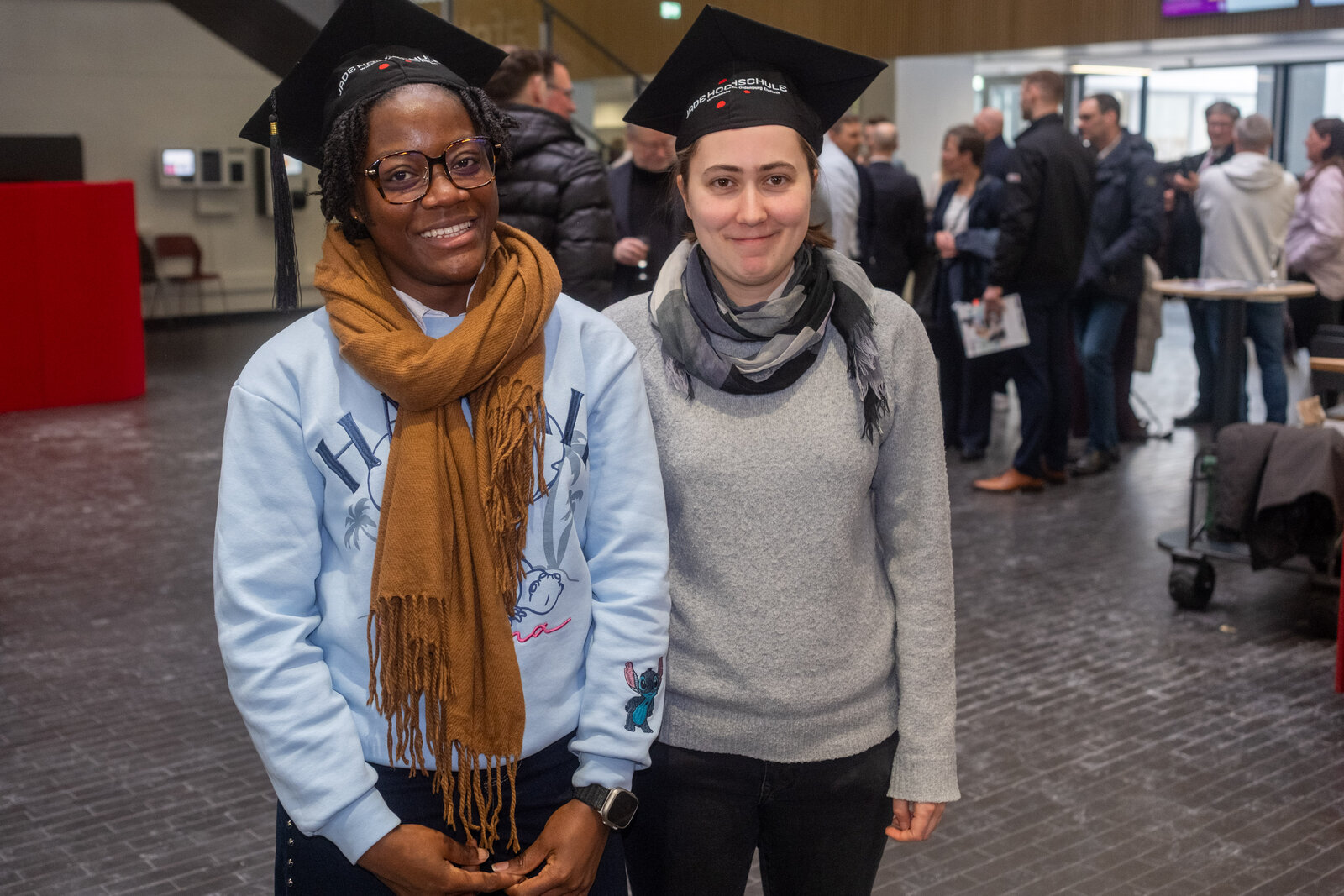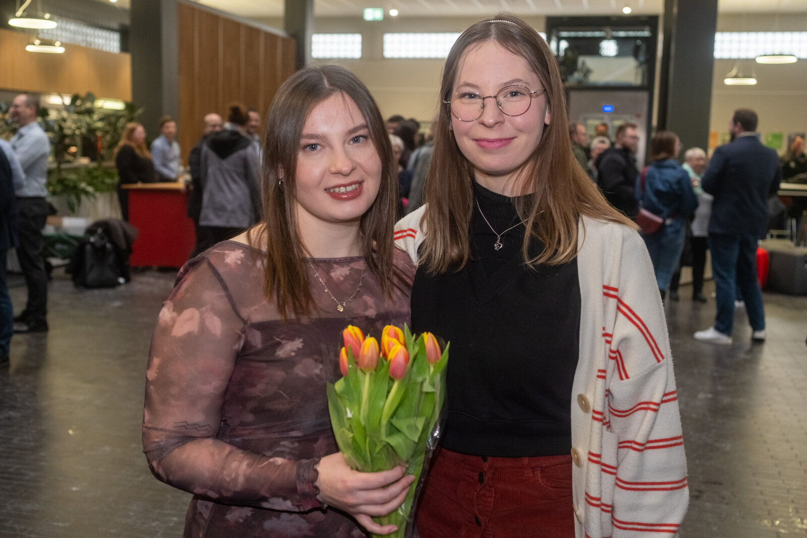 Trägerinnen des Sozialpreises: Letje Malle und Lea Prawit – Absolventinnen des Studiengangs Medienwirtschaft und Journalismus am Fachbereich Management, Information, Technologie (Foto: Jade HS/Sascha Stüber)