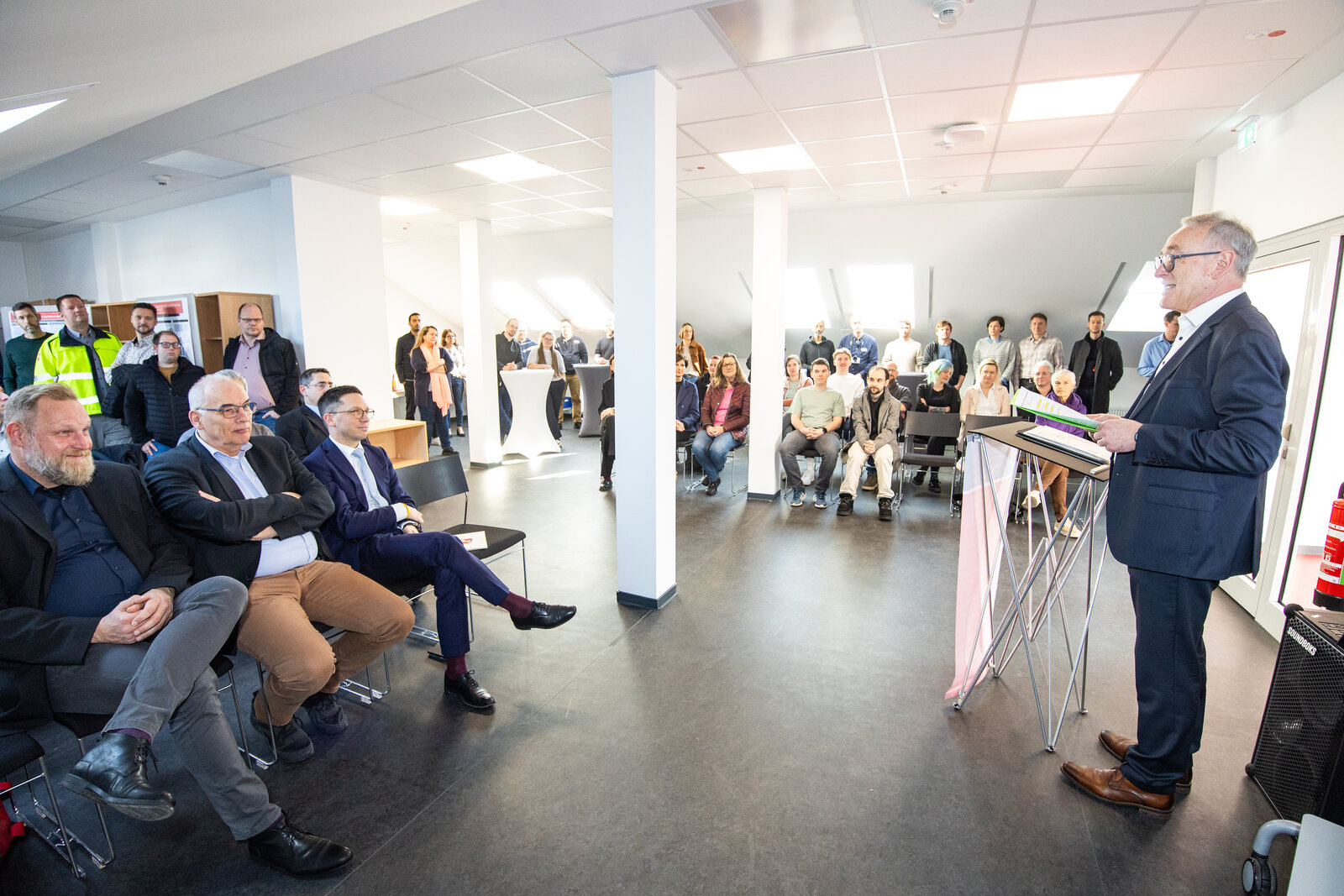 Besonders freue ihn, dass in der Alten Feuerwache mit einem Skills-Lab, Lehr- und Arbeitsräumen nun Räumlichkeiten für den sich in Gründung befindenden neuen Fachbereich Gesundheit und Technik zur Verfügung stünden, sagt Weisensee bei der Begrüßung der Gäste. Die Kosten für die Sanierung belaufen sich auf rund 8,9 Millionen Euro. Insgesamt stehen etwa 800 Quadratmeter Nutzfläche zur Verfügung.