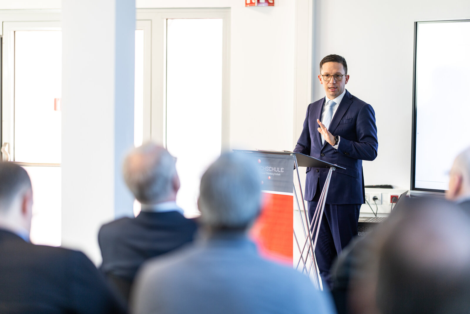 Oldenburg. Mit dem Baubeginn am 17. Juli 2023 startete die umfassende Sanierung der Alten Feuerwache an der Auguststraße 5. Nun ist das Gebäude fertiggestellt und steht der Jade Hochschule zur Verfügung. Bei der heutigen Eröffnungsveranstaltung begrüßte Präsident Prof. Dr. Manfred Weisensee Falko Mohrs, Niedersachsens Minister für Wissenschaft und Kultur, die beteiligten Baufirmen, das Staatliche Baumanagement Region Nord-West und alle Hochschulangehörigen, die im frisch sanierten Gebäude studieren und arbeiten werden.