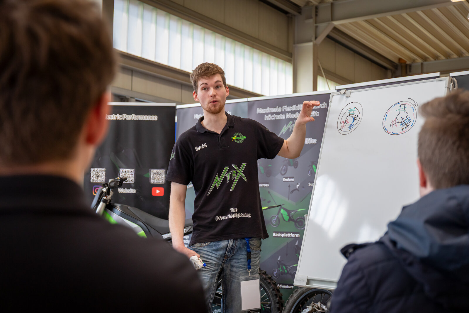 Ein besonderer Publikumsmagnet war das Projekt des Start-Ups Envecotricity eines Studierenden der Jade Hochschule: Gemeinsam mit Schüler_innen rüstete Gründer David Schoone herkömmliche Pocketbikes auf Elektroantriebe um. Das Ergebnis: beeindruckende Mini-Fahrzeuge, die zeigten, wie sich klassische Technik nachhaltig transformieren lässt.