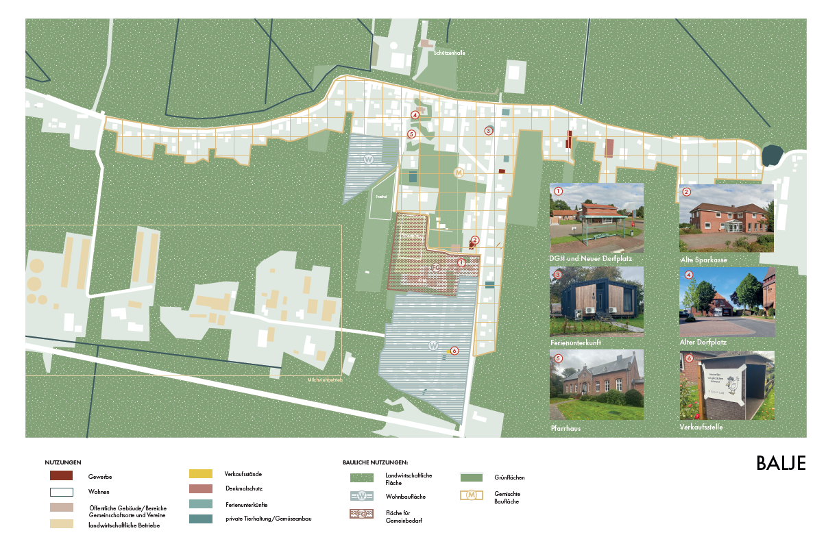 Der Ort wird bislang vor allem durch klassische Einfamilienhäuser, Katen und Höfe geprägt. Ziel der Gemeinde war es daher, das Potenzial neuer, anpassungsfähiger Wohnformen auszuloten, die gemeinschaftliche Strukturen stärken und langfristig zur Attraktivität des Dorflebens beitragen können.